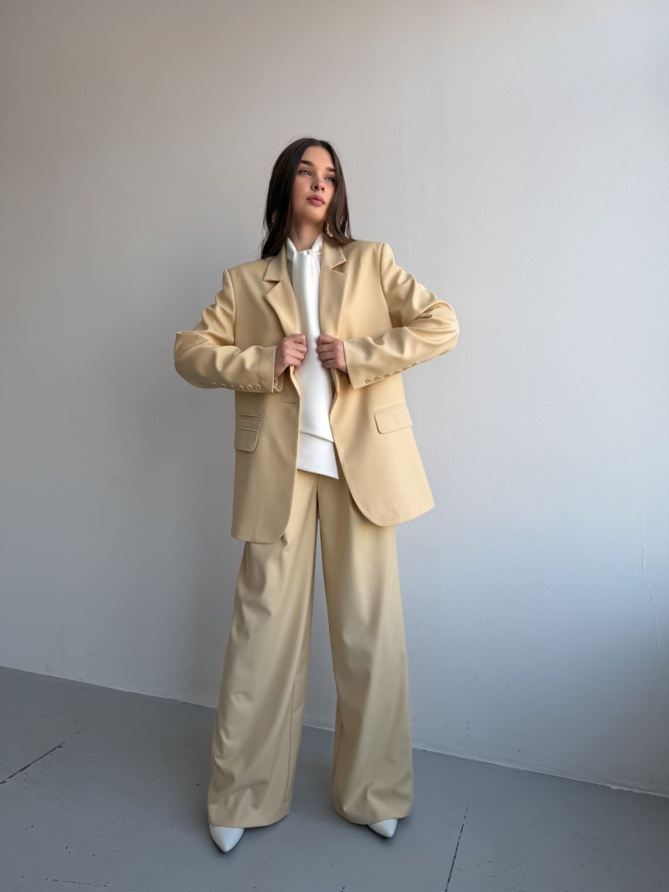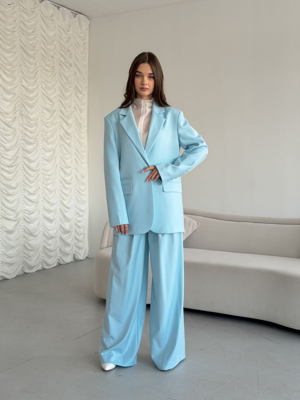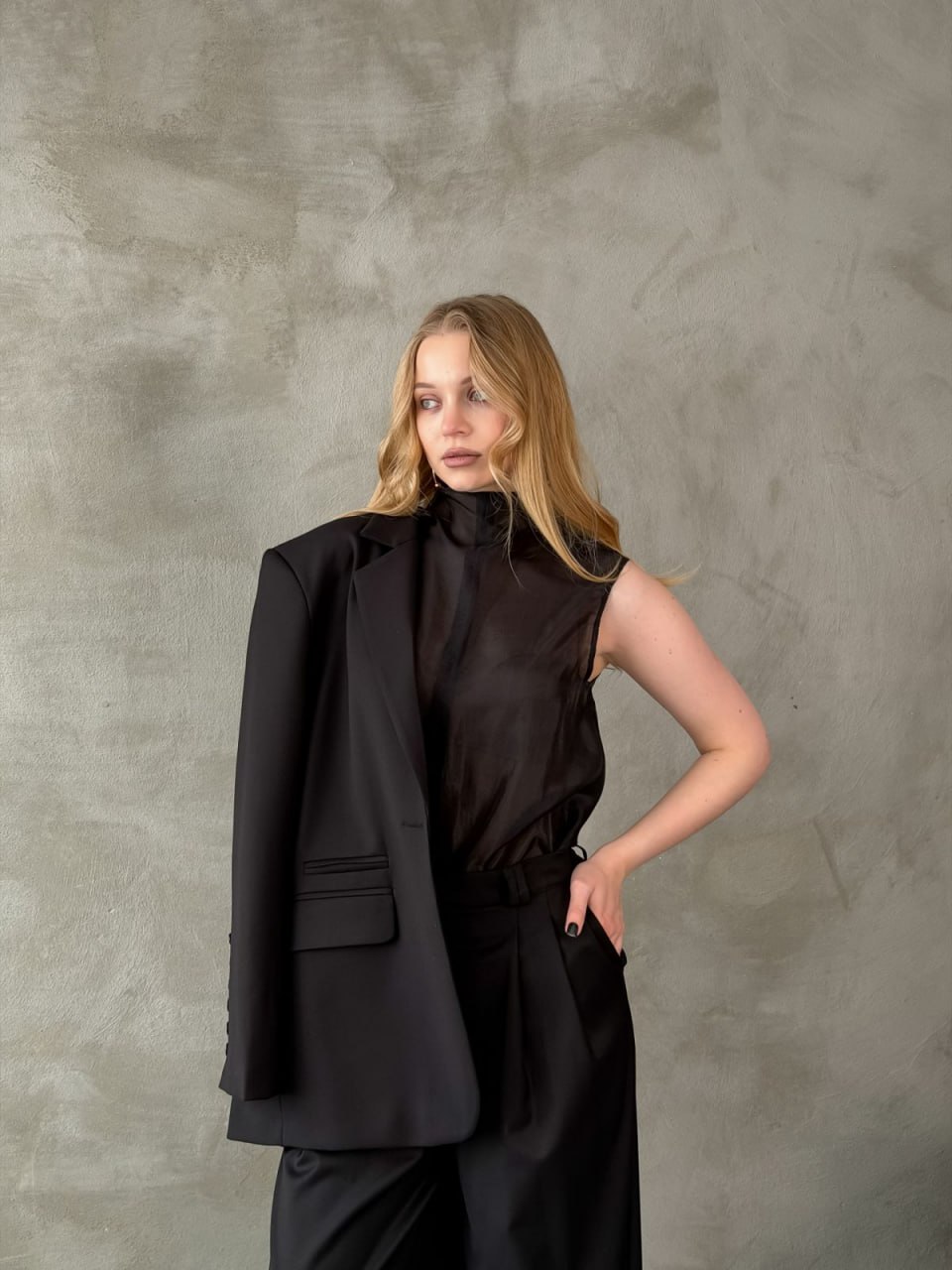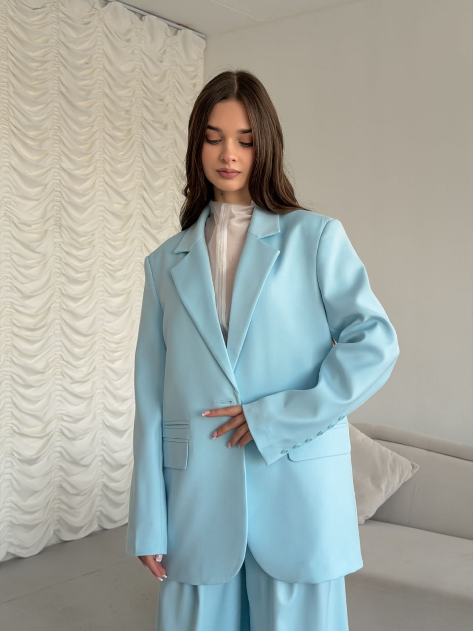 Ткань: лащенка Состав: 65% полиэстер, 32% вискоза, 3% спандекс Подкладка: 55% полиэстер, 45% вискоза