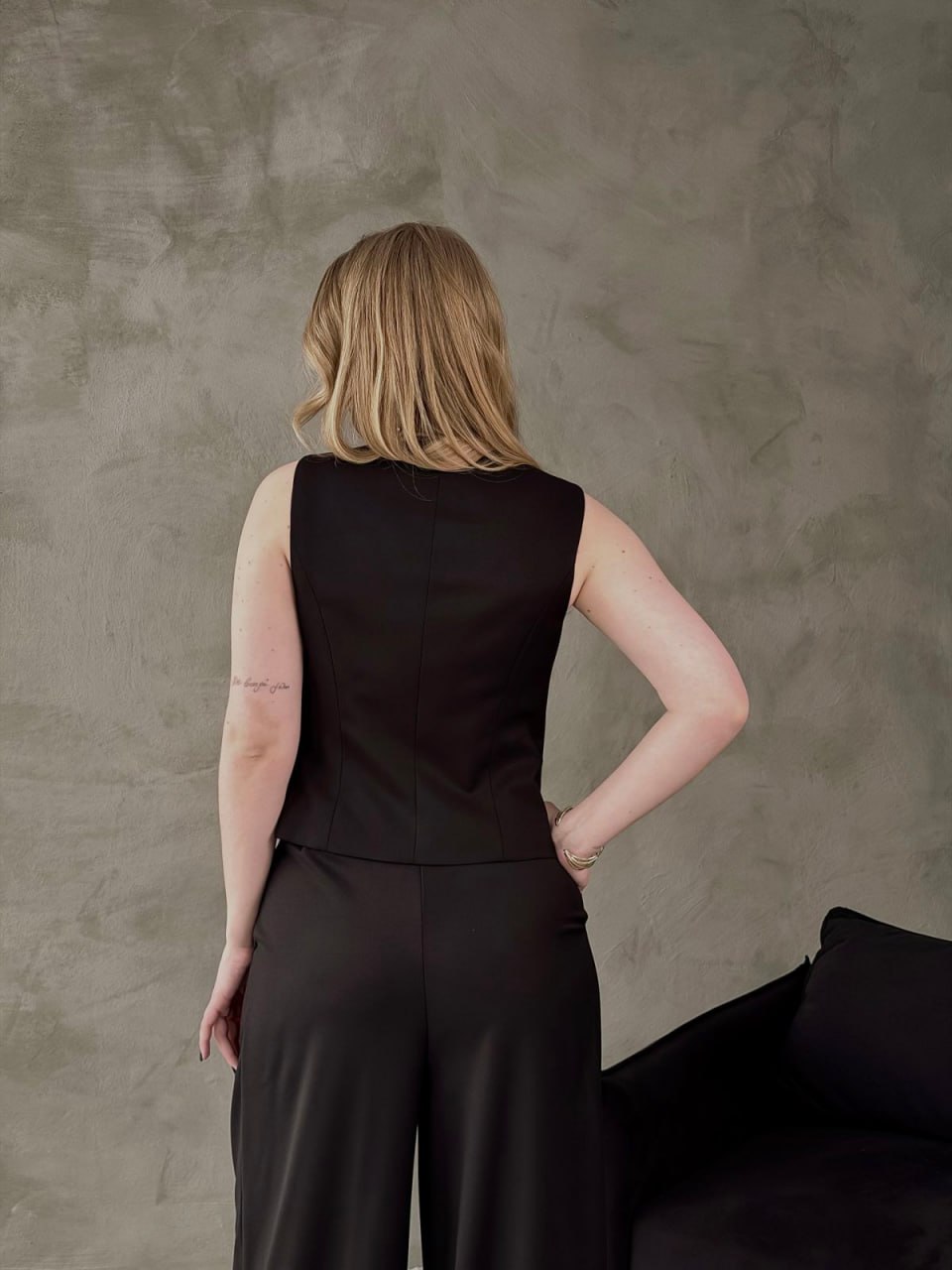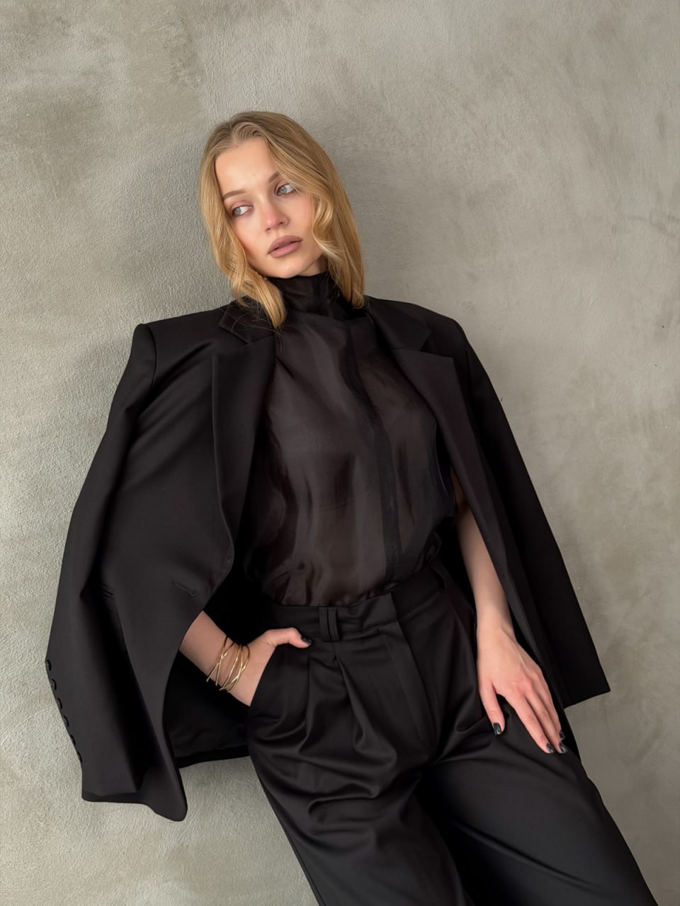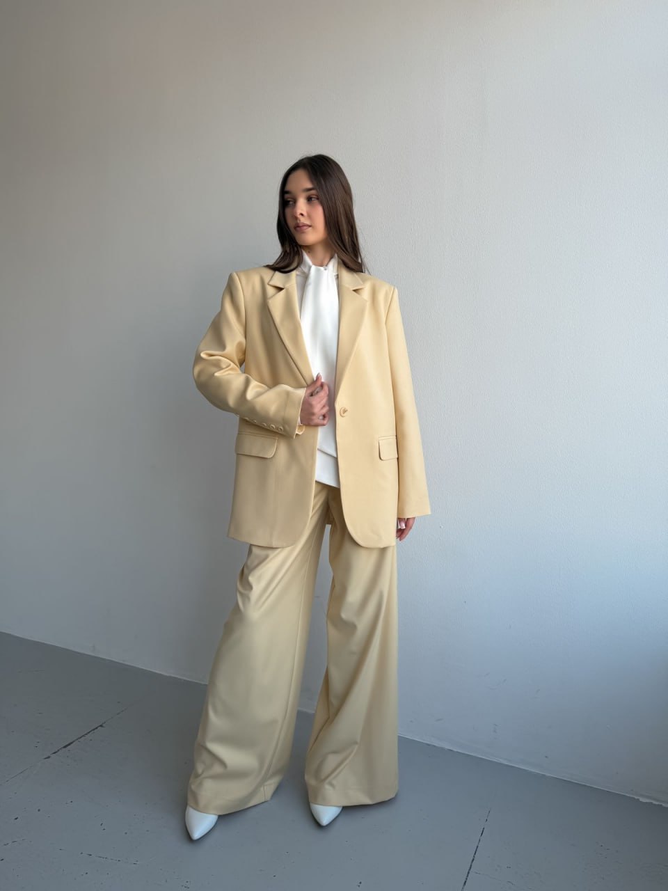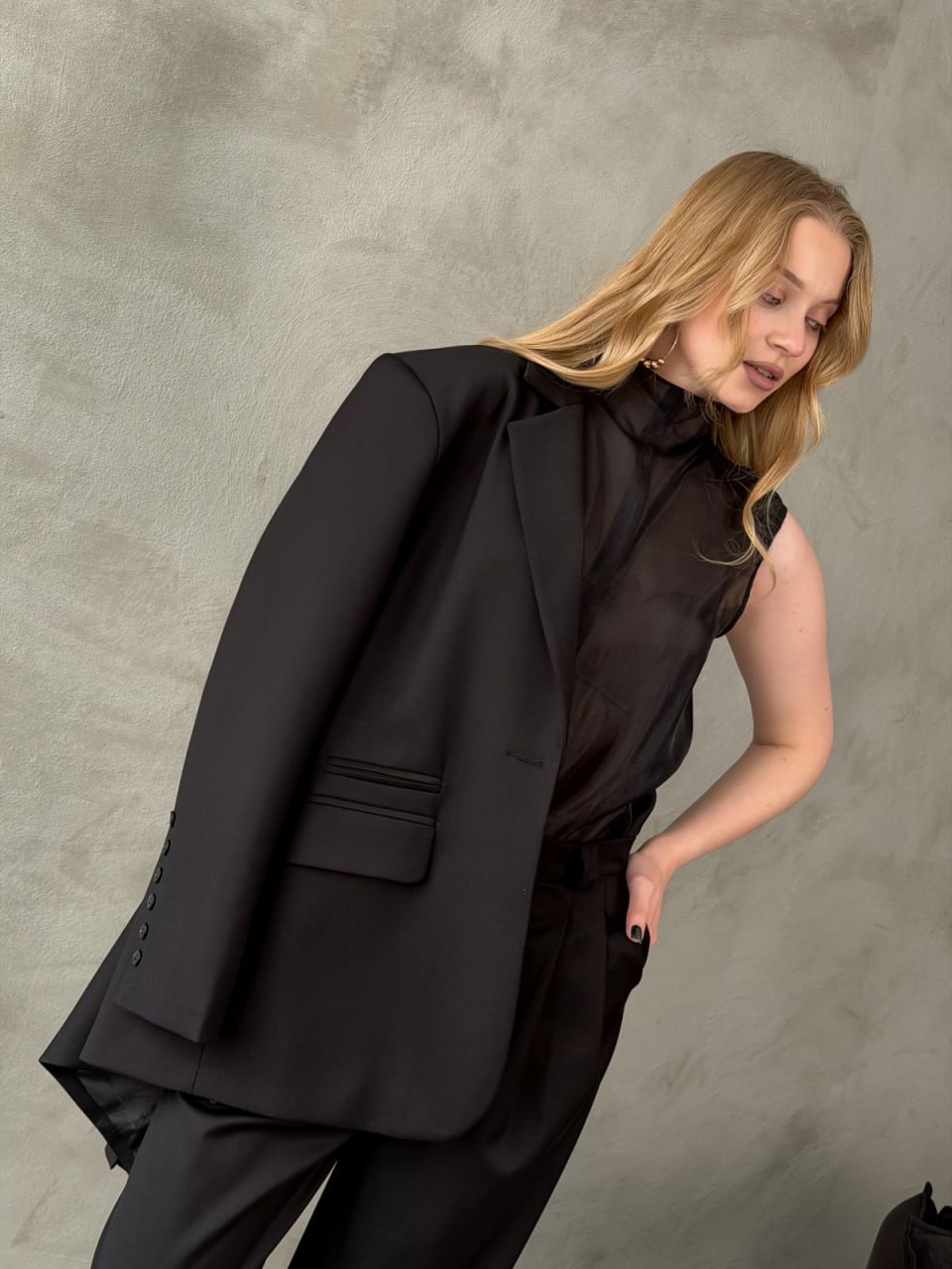 Ткань: лащенка Состав: 65% полиэстер, 32% вискоза, 3% спандекс Подкладка: 55% полиэстер, 45% вискоза